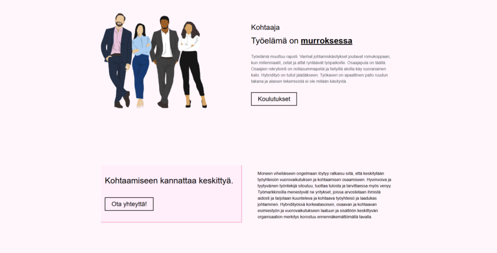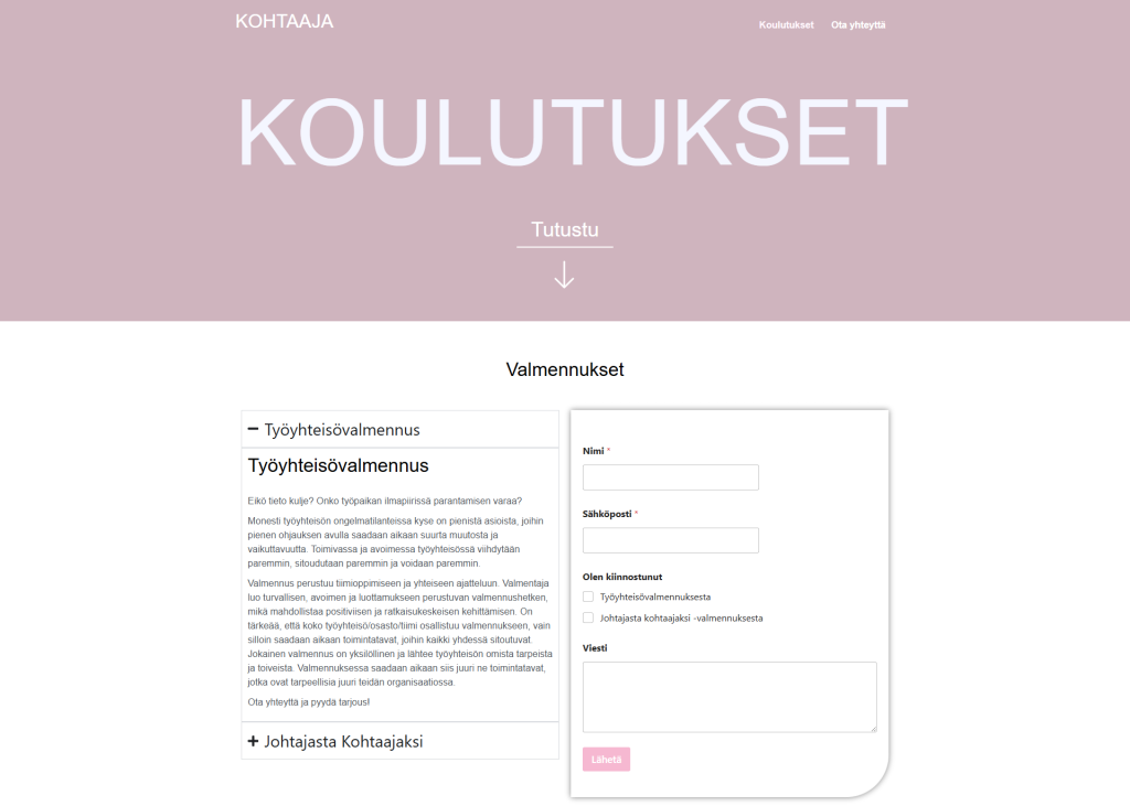 Suunnittelimme ja toteutimme yritykselle verkkosivut, joissa oppimisalusta on sisäänrakennettuna. Nyt koulutusten myynti, materiaalien jakaminen ja kurssien suorittaminen tapahtuu saman sivuston kautta. Käyttäjäkokemus on selkeä, ja ylläpito on huomattavasti helpompaa yritykselle.